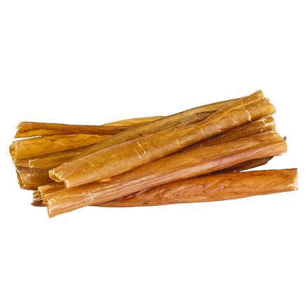 chutný pamlsek pro psy vyrobeno ze sušené buvolí kůže v balení velikost: 12 cm/ ø 9–10 mm obsah balení: 100 ks
